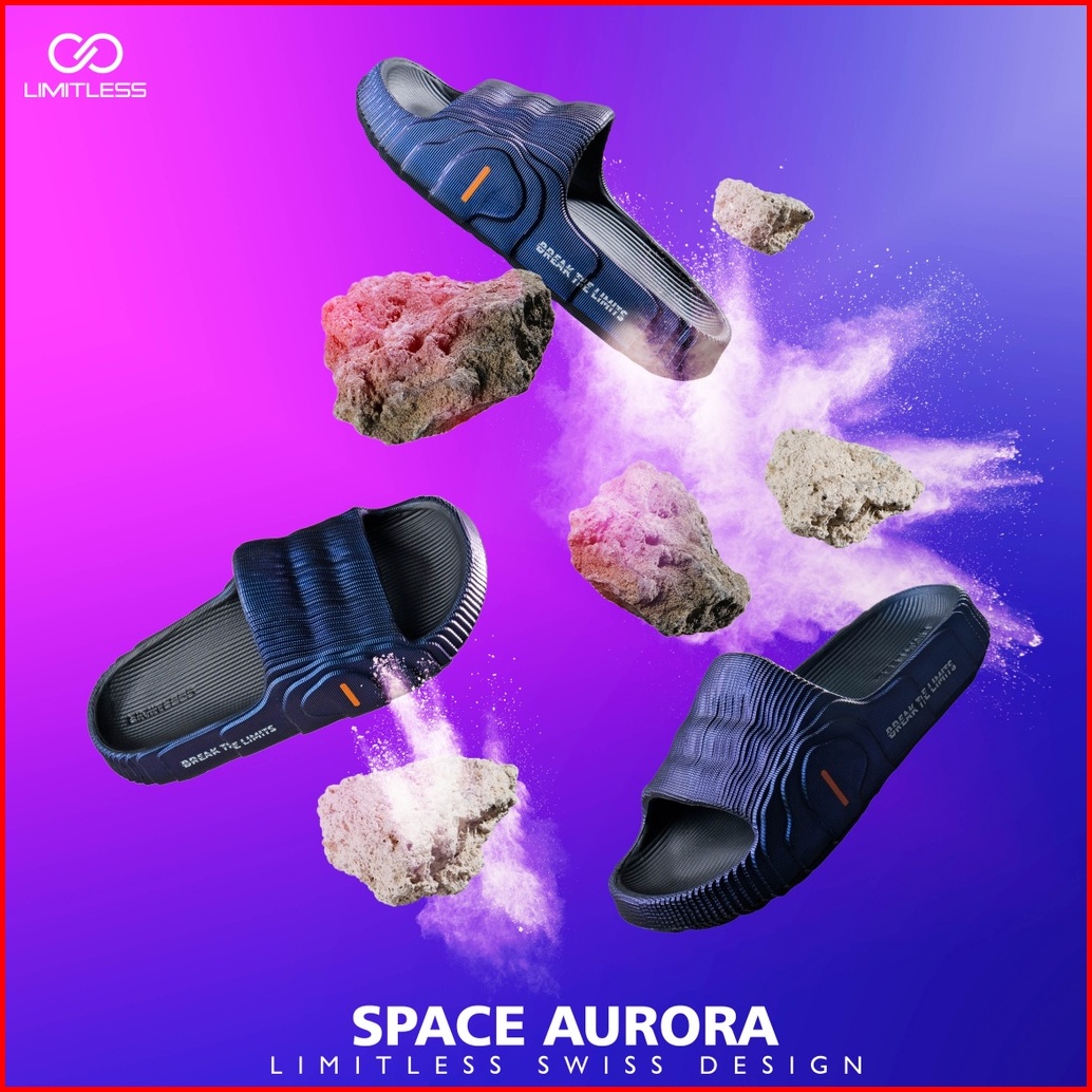 Limitless - Sendal Slide Pria Space Aurora Premium Eva Extralight Adilette 23 Sendal Cowok Selop Casual Terbaru 2025 San