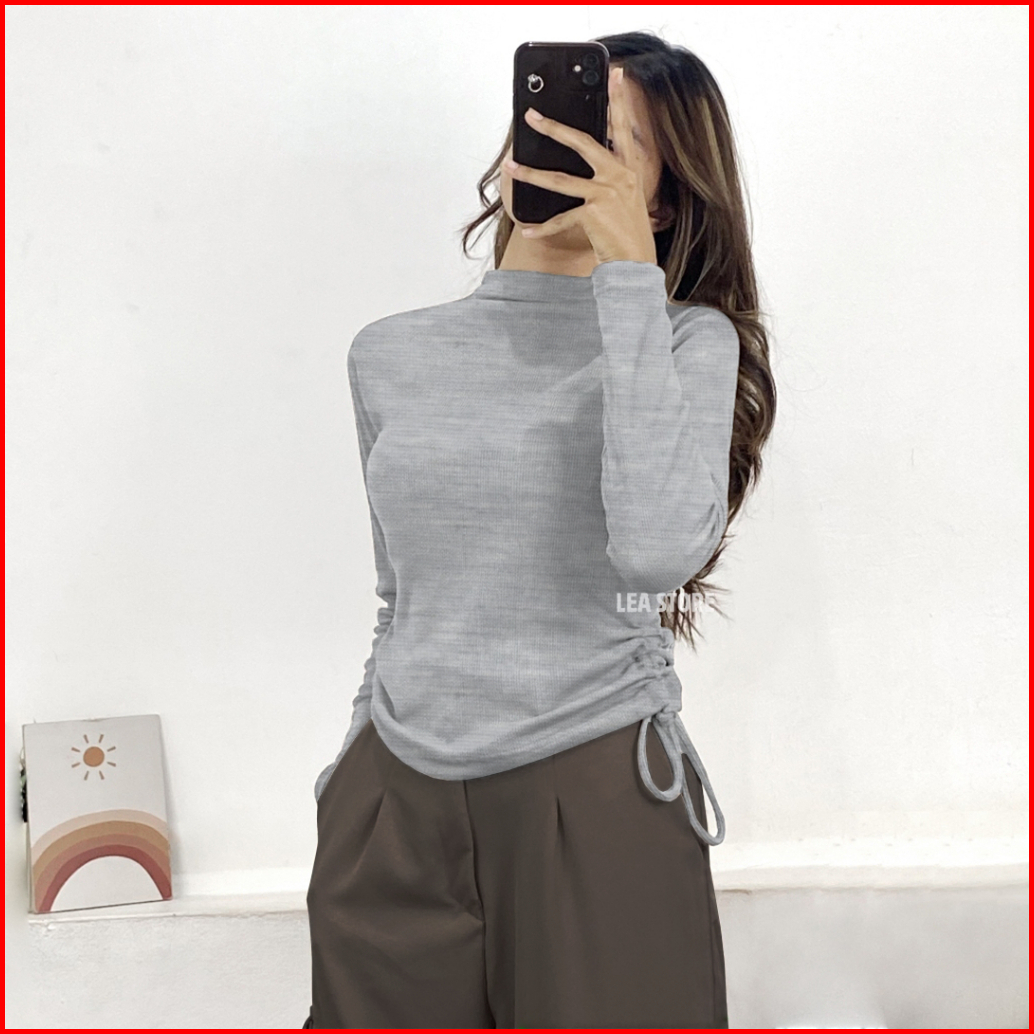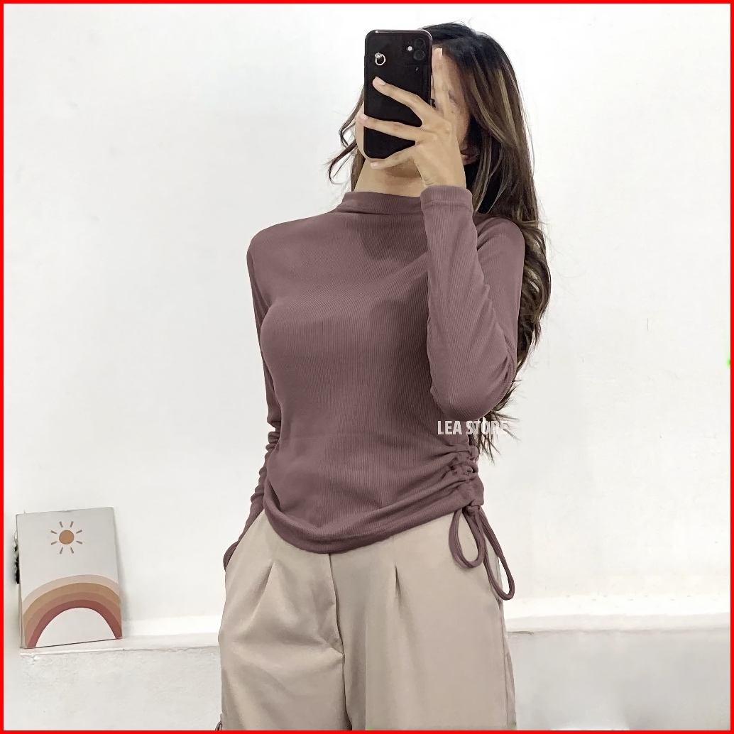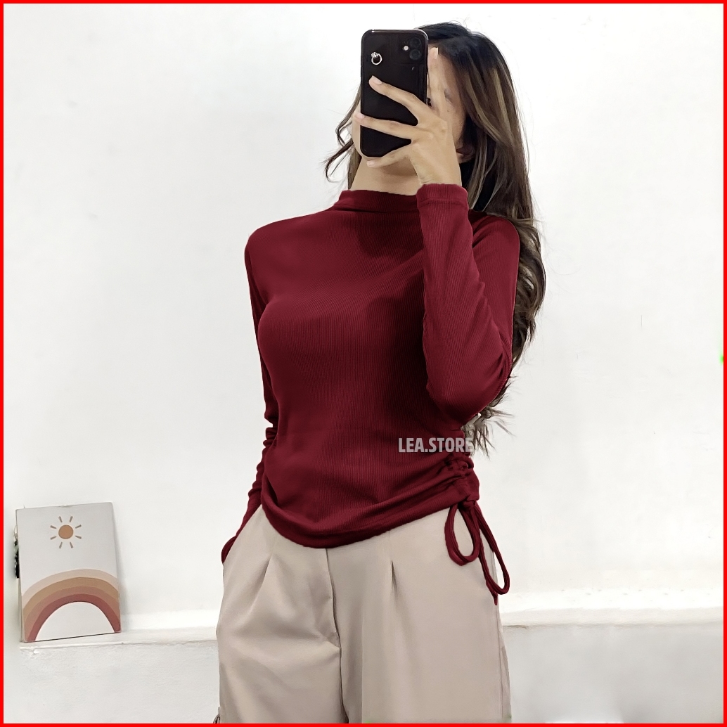Agnes Turtleneck Blouse Crop Top Wanita Lea Store
