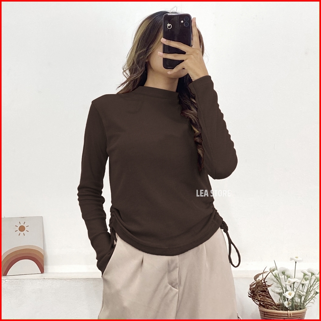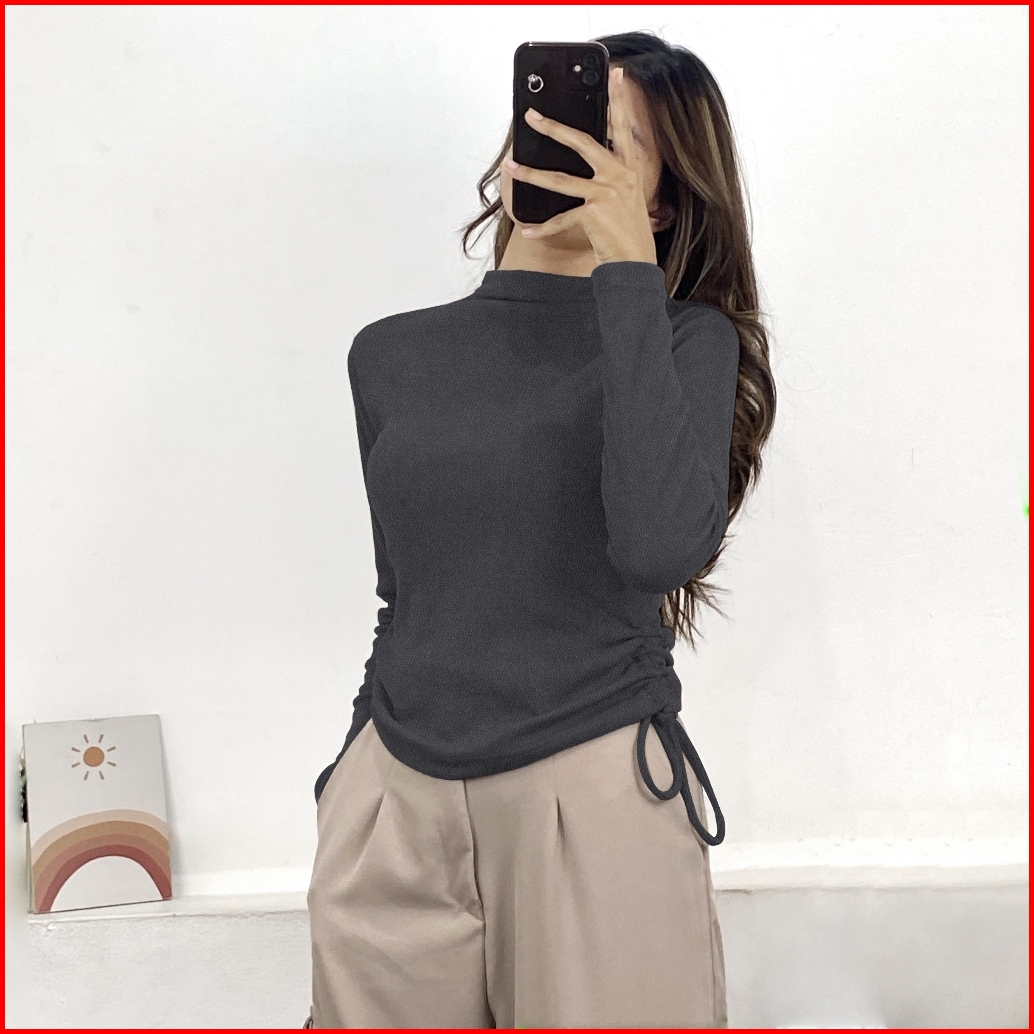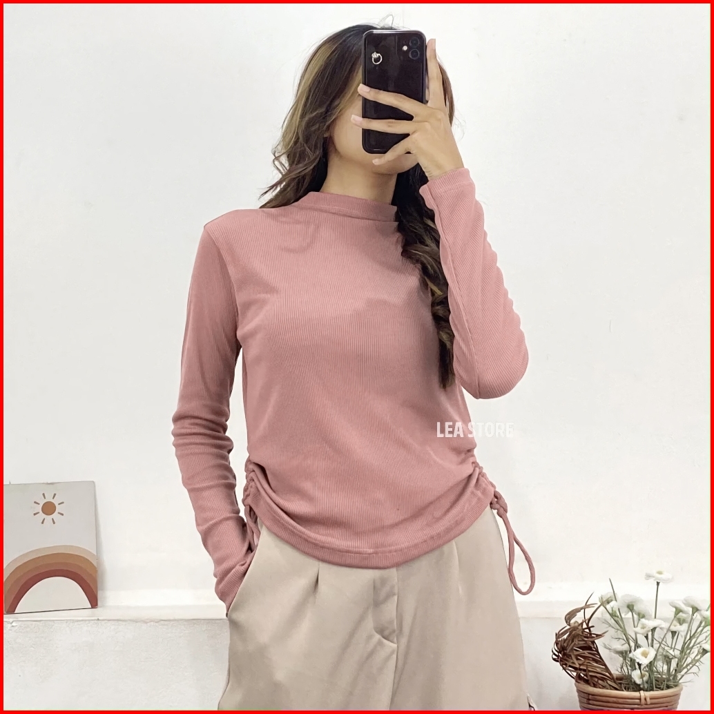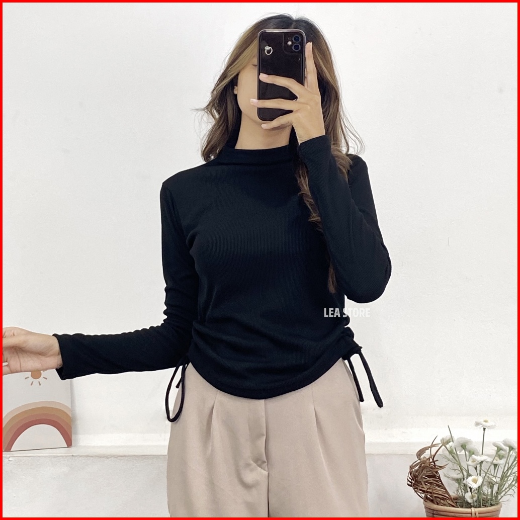 Agnes Turtleneck Blouse Crop Top Wanita Lea Store