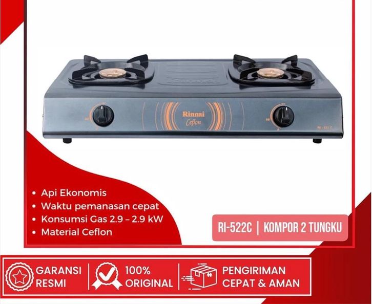 KOMPOR GAS RINNAI TEFLON (API EKONOMIS / 2 TUNGKU) 100% ORIGINAL