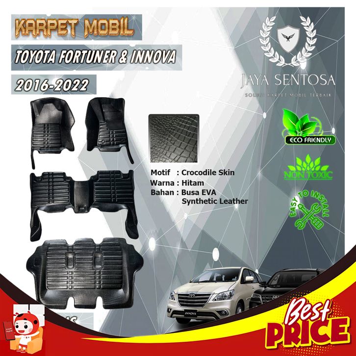 BARU+ KARPET MOBIL KIJANG INNOVA DAN TOYOTA FORTUNER 2016-2022 + ALAS KAKI KARPET 7D NEW MODEL 3 BARIS