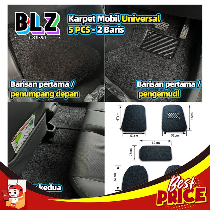 BARU+ BOLIZUN KARPET MOBIL UNIVERSAL PVC MIE BIHUN 5 PCS - 2 BARIS / UNIVERSAL FIT CAR MATS / CAR FLOOR MATS