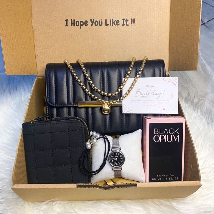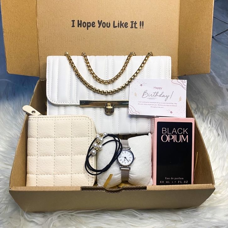Hampers Tas Cewek Gift Box Dompet Parfum Jam Tangan Ikat Rambut Cewe Kado Ultah Wedding Hadiah Pacar Istri
