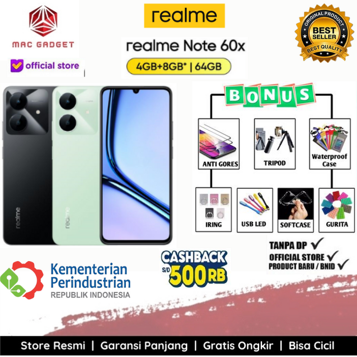 Official Store 🔥 realme note 60x 4+8/128GB 5000mAh Battery | IP54 | Armor Shell Garansi Resmi