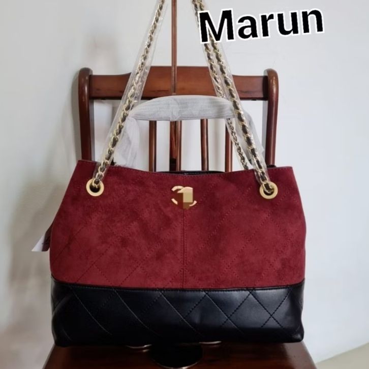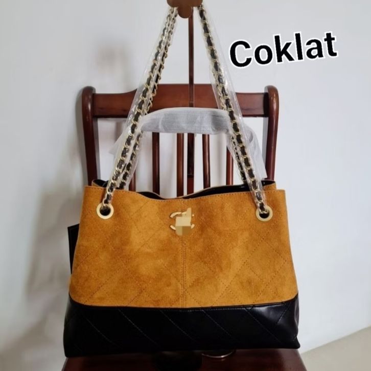 TAS CHANEL C25 BAG SUEDE MIX KULIT PREMIUM/TAS WANITA CENDOL CD SHOULDERBAG 35CM/TAS BRANDED TERBARU