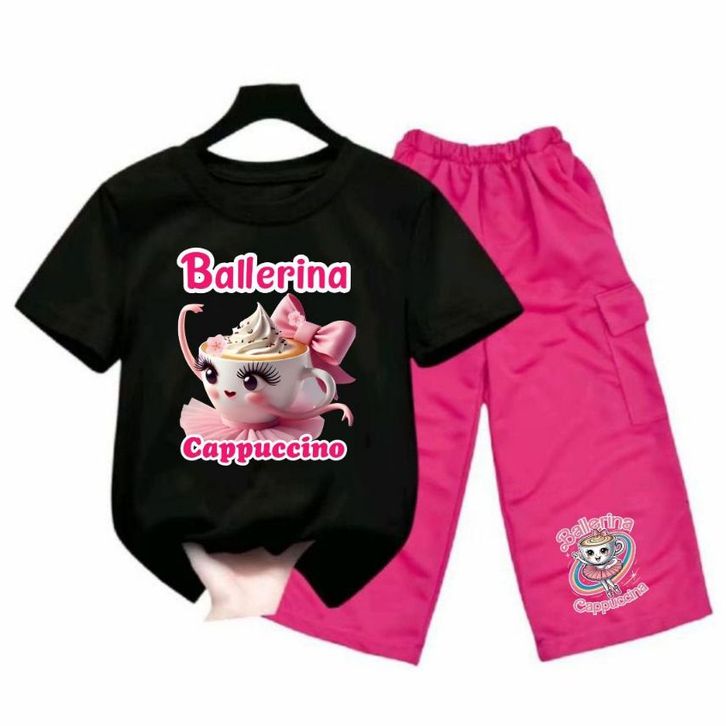 Setelan Baju Anak Perempuan Ballerina Capuchina Celana Kargo 2-12 Tahun Setelan Baju Anak Cewe Lengan Pendek Anomali