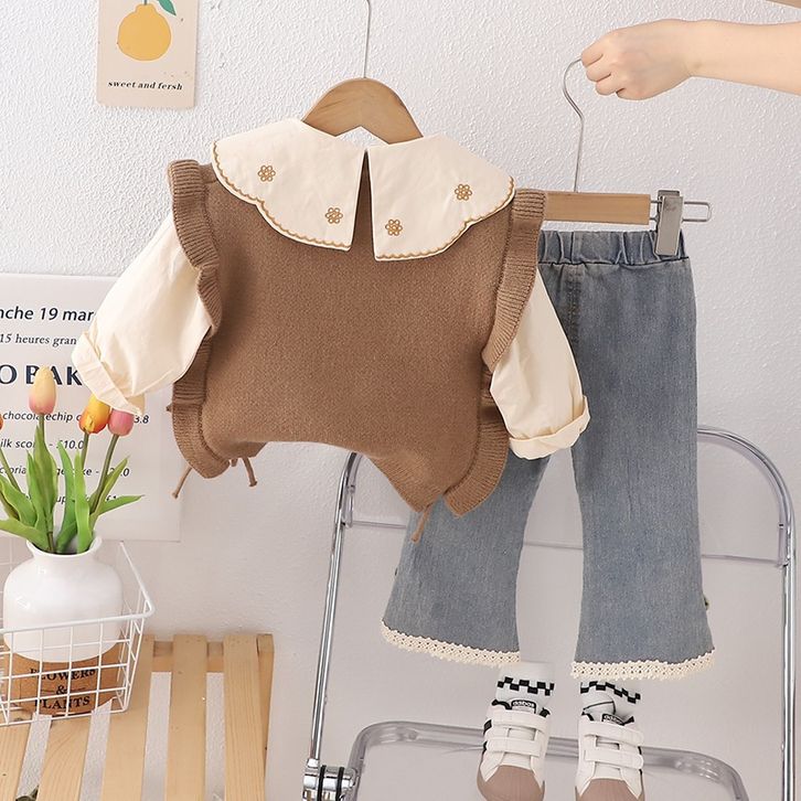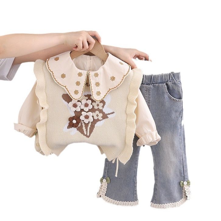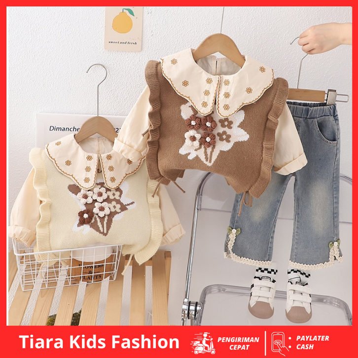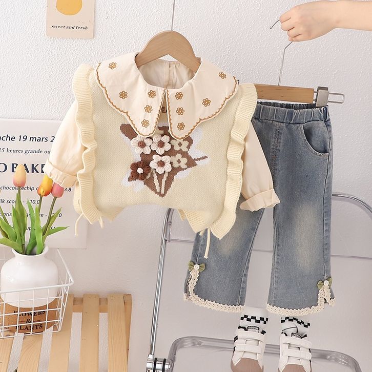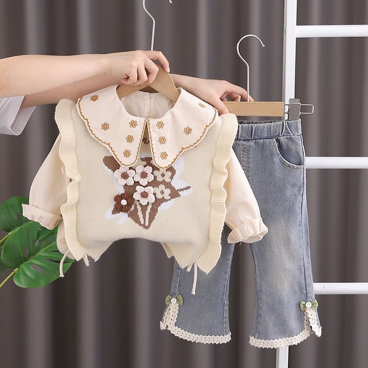Setelan Baju Anak Perempuan Kekinian Celana Jeans Casual Setelan Anak Perempuan Korea Style Lengan Panjang 1-5 Tahun