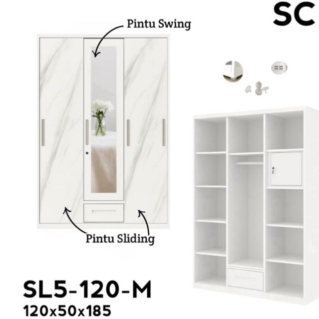 LEMARI PAKAIAN SLIDING BESI JUMBO 120 ZL 001-2 ANTI AIR RAYAP JAMUR KARAT FREE ONGKIR KHUSUS DENPASAR BALI