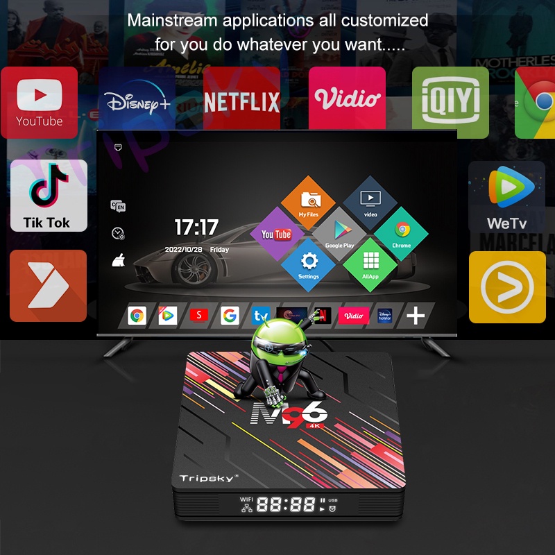TRIPSKY M96 RAM 4GB ROM 64GB VOICE REMOTE SUPPORT BLUETOOTH TV BOX ANDROID 10.0 4K