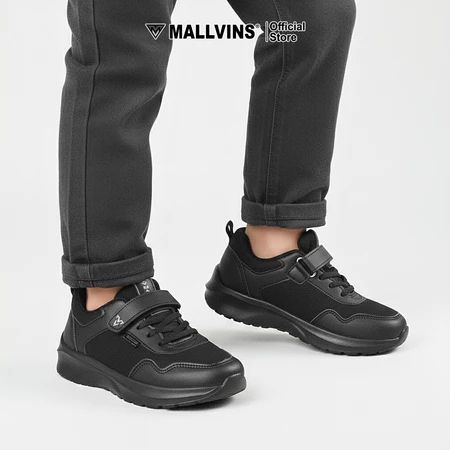 MALLVINS Sepatu Sekolah Anak Size 31-38 Full Hitam