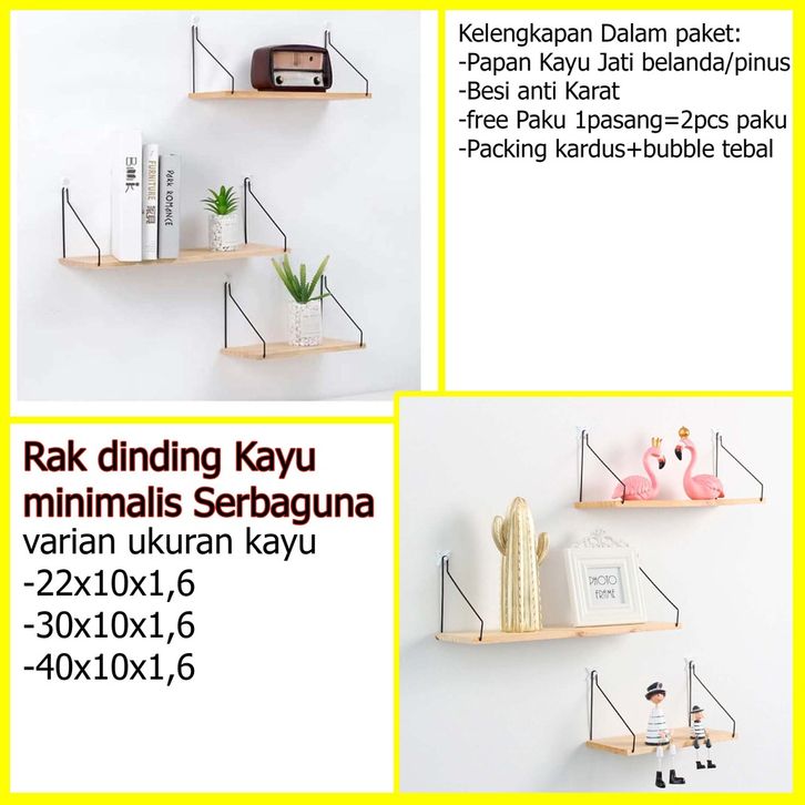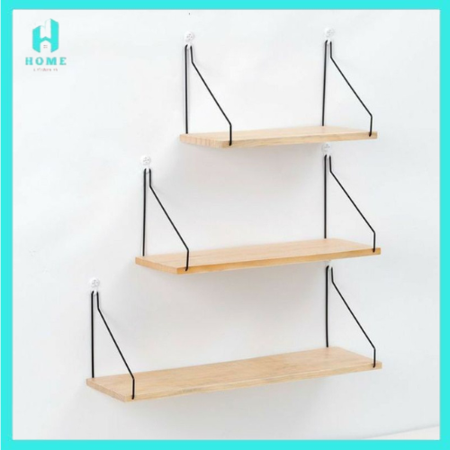 Rak Dinding Tempel Kayu Besi Gantung Rak Dinding Kayu Besi Serbaguna Hiasan Kamar dekorasi rumah Storage