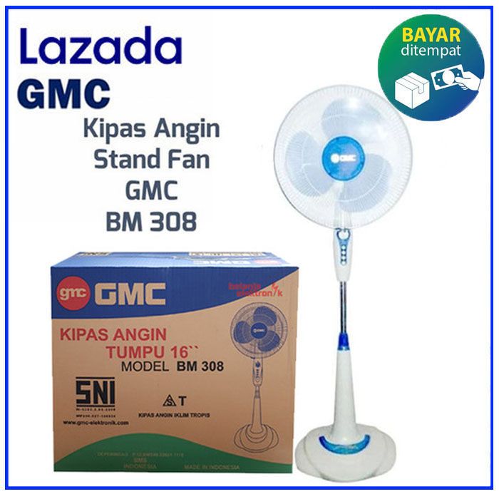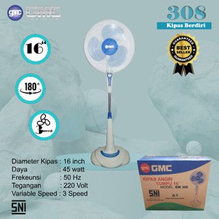 Kipas Stand Fan GMC 308 / 308 Kipas Angin Berdiri Tumpu Original 16 inchi