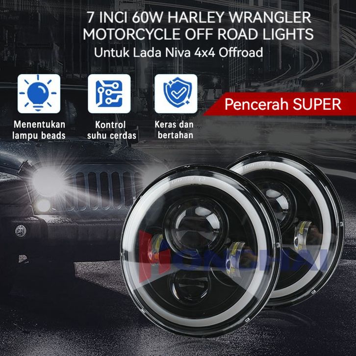 Lampu Projector LED Daymaker Harley 7 inchJeep 4 LED Depan Hi Lo Sein 2 LAMPU DAYMAKER BULAT