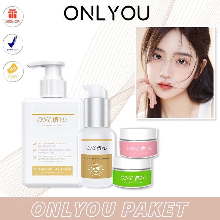 ONLYOU 4PCS PAKET / ONLYOU Instant Brightening Tone Up Cream + Menyegarkan SPF 50+ PA+ + Sunscreen + Pure Acne Repair Cr