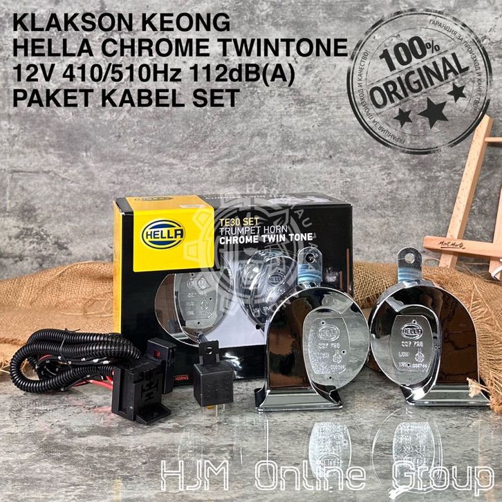 KLAKSON KEONG HELLA CHROME TWIN TONE 12V PAKET KABEL RELAY SET ORIGINAL