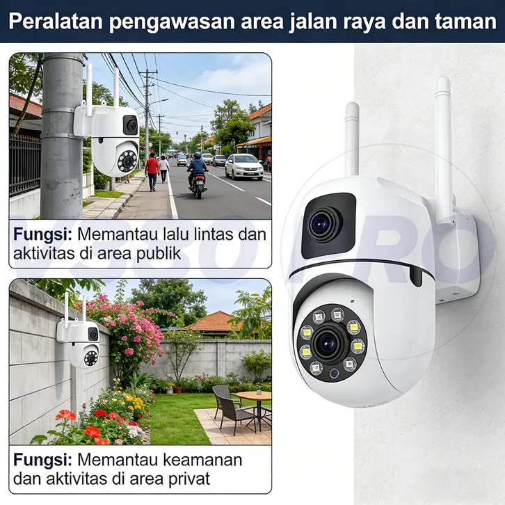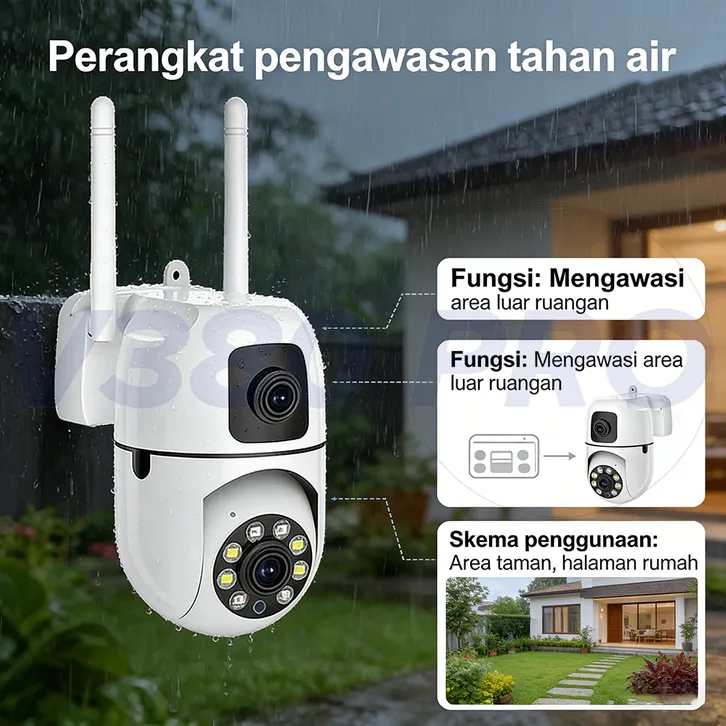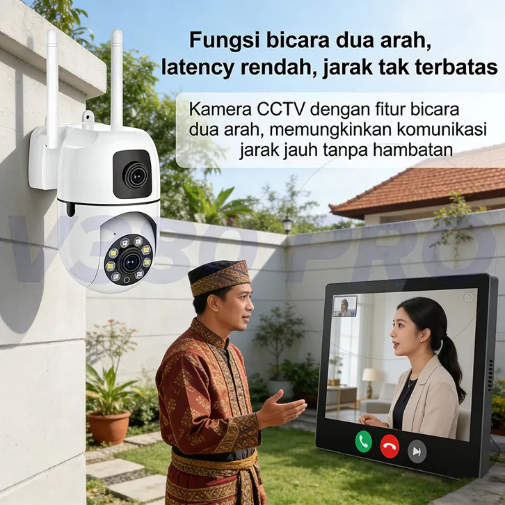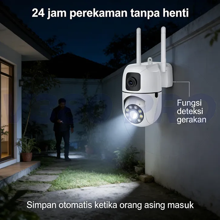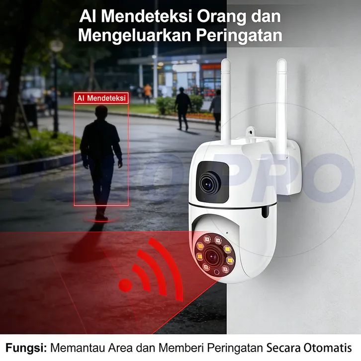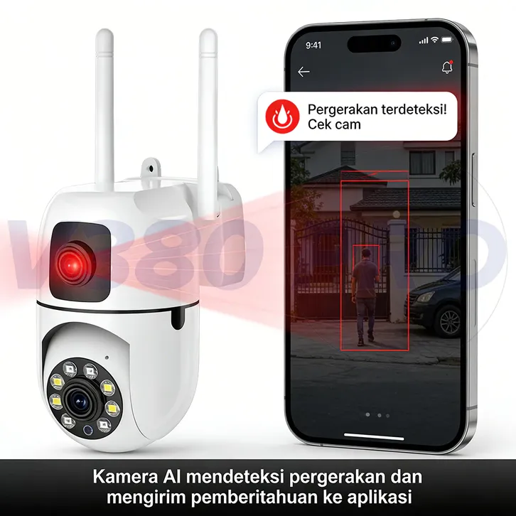 V380 Pro Kamera CCTV Penglihatan Malam Penuh Warna Outdoor Tahan Air IP65 Deteksi/Alarm Pintar