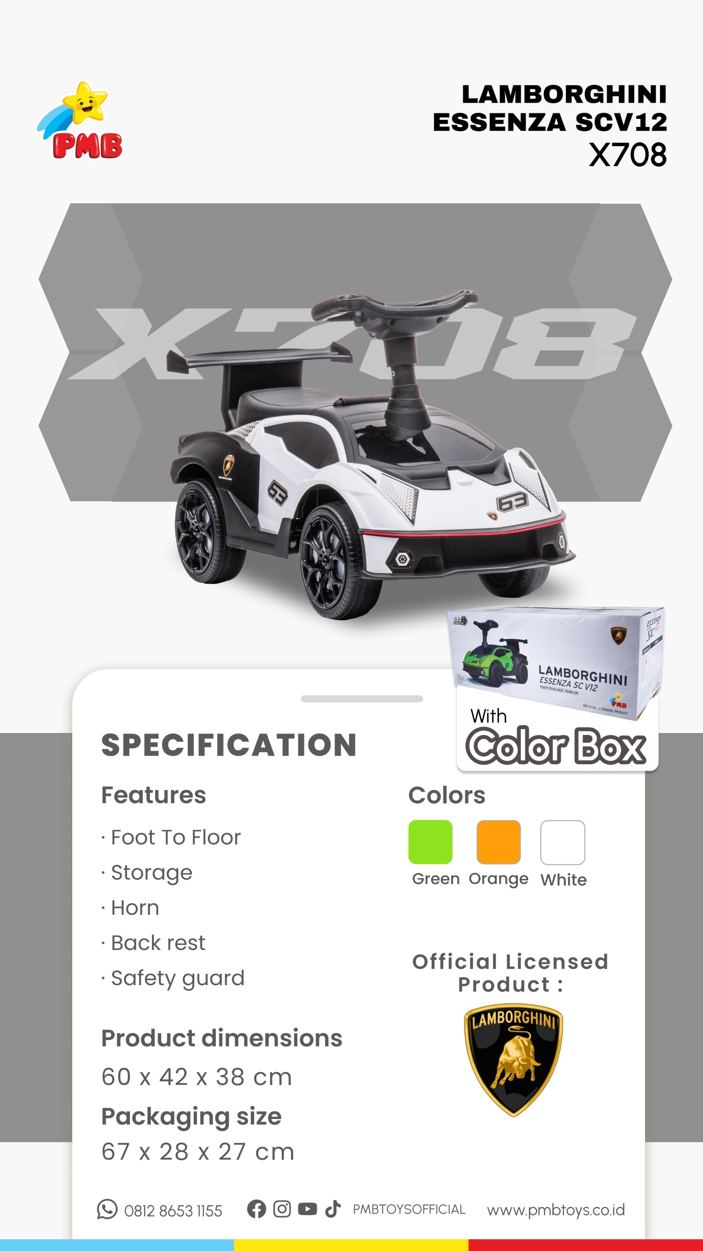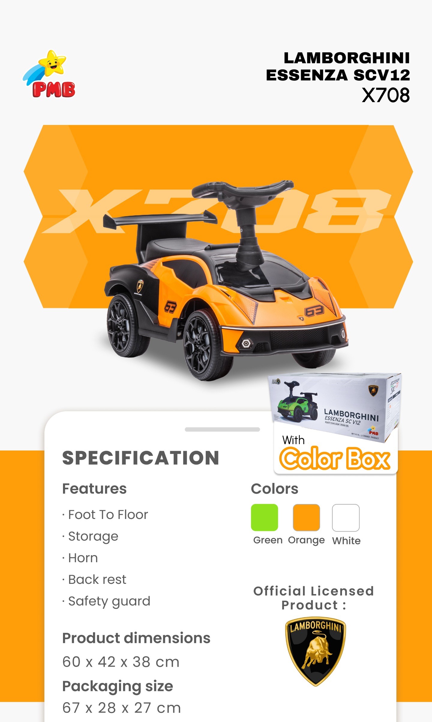MOBIL MAINAN ANAK X708 - LAMBORGHINI ESSENZA SC V12 FTF X 708 PMB TOYS