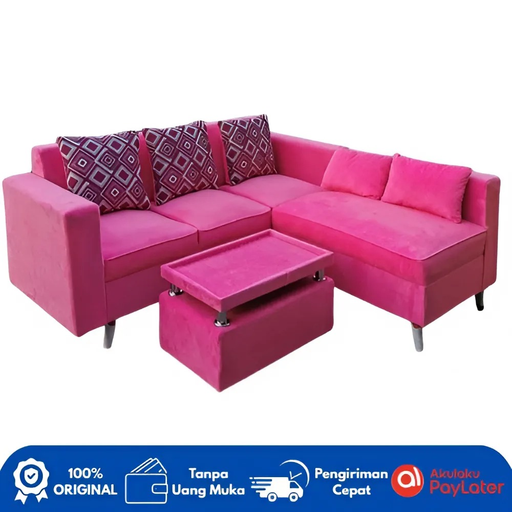 SOFA RUANG TAMU MINIMALIS ESTHETIC TANPA DP / SOFA RUANG TAMU MEWAH / SOFA L FULL BUSA FREE ONGKIR - DP0
