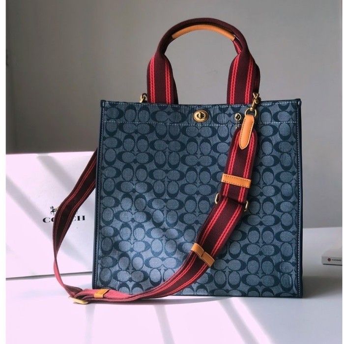 Tas Coach Tote 34 In Signature Chambray Midnight Navy