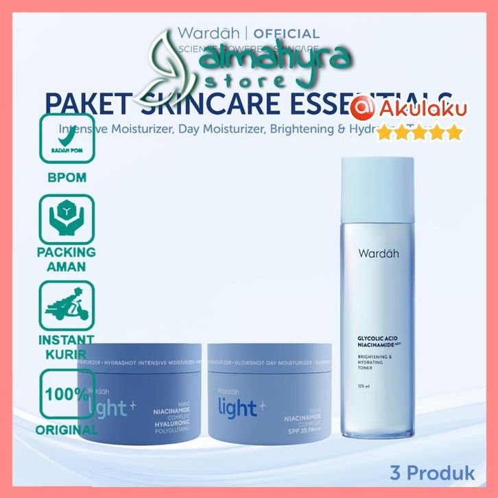 Wardah Lightening Paket Skincare Essentials (Day + Night+ Face Toner) /almahyra store/original/skincare wajah