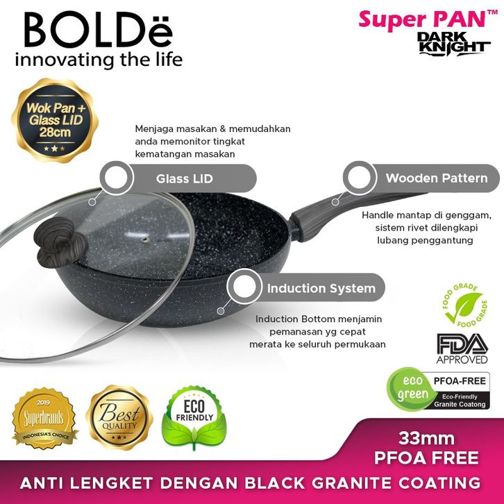 Wajan Anti Lengket Bolde Tutup Kaca Super Pan 28CM Serbaguna Original Official Store