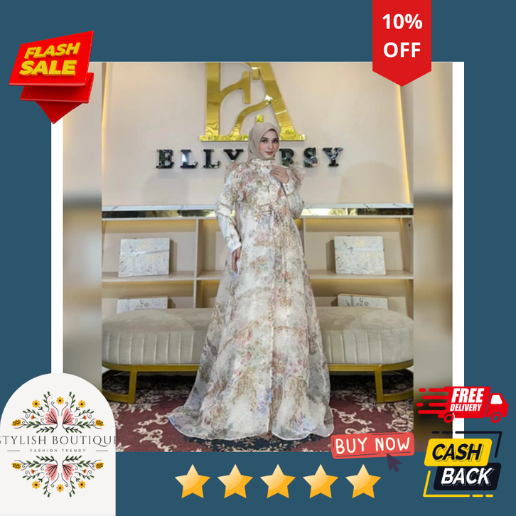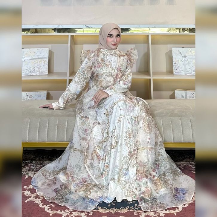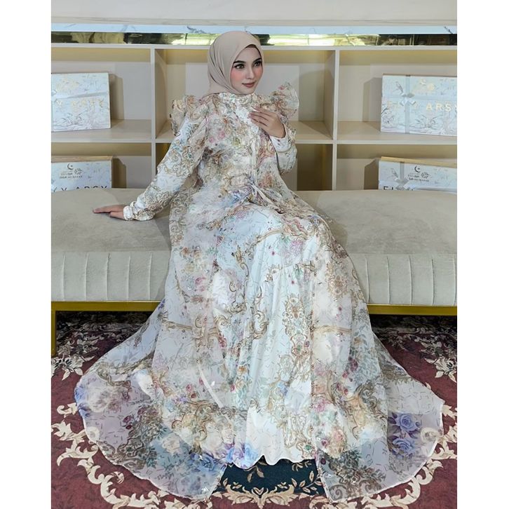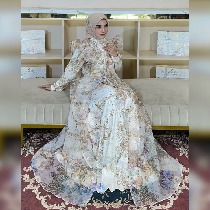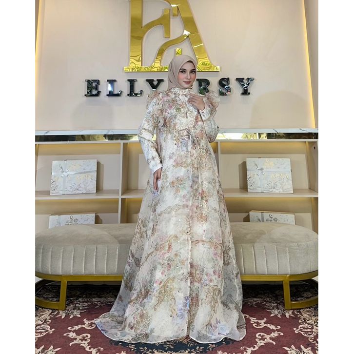 Dress Lebaran Elly Arsy 2026 Helen Material Lady Zr Pattern EA Organza Pattern EA Aksen Payet Hand Made Only Gamis