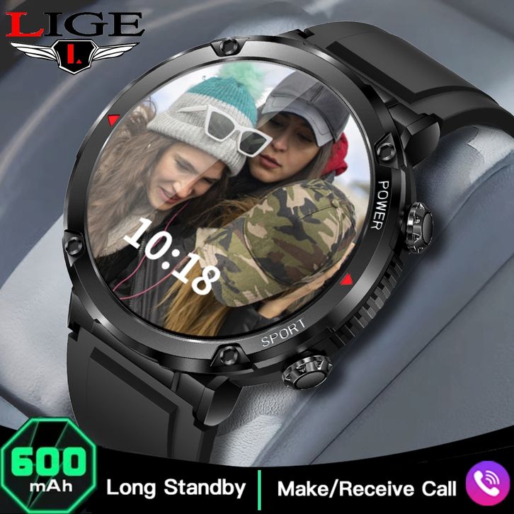 LIGE Jam pintar Pria 1.6 Inci Layar IPS 600mAh Baterai Besar Panggilan Olahraga Jam Tangan Wanita IP68 Tahan Air