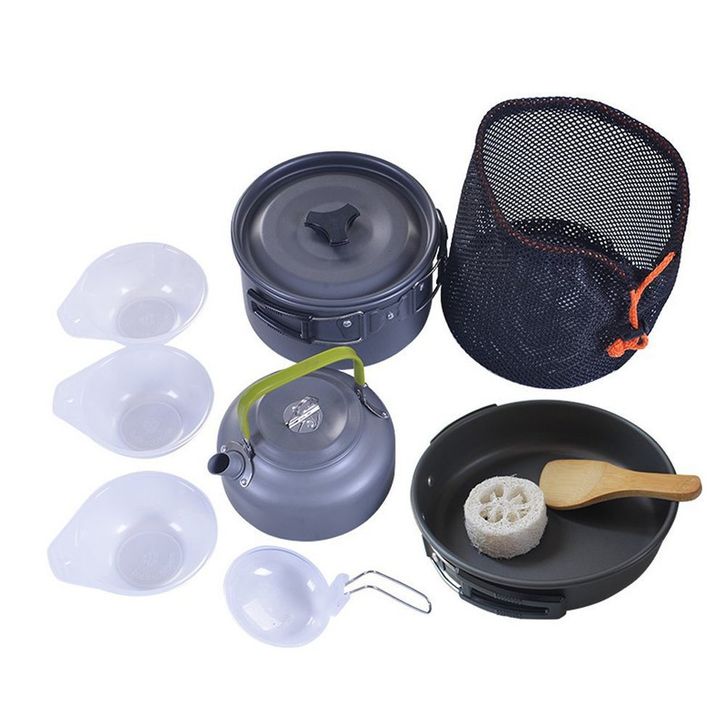 Paket Alat Masak Camping Outdoor Cooking Set Plus Teko DS-308 & Kompor K203 Kompor Mawar Nesting Camping
