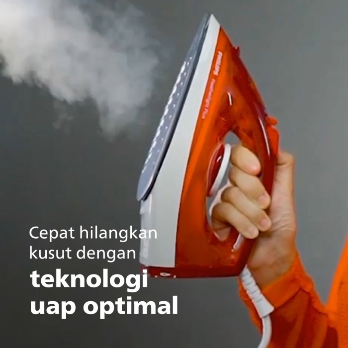 PHILIPS SETRIKA UAP GC1424/45 - MERAH, TAPAK NON-STICK, GOSOKAN BAJU