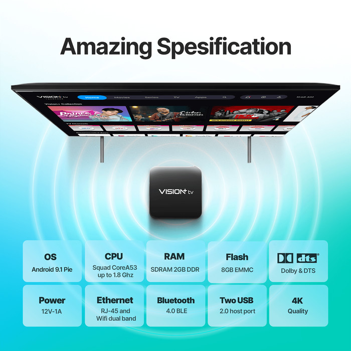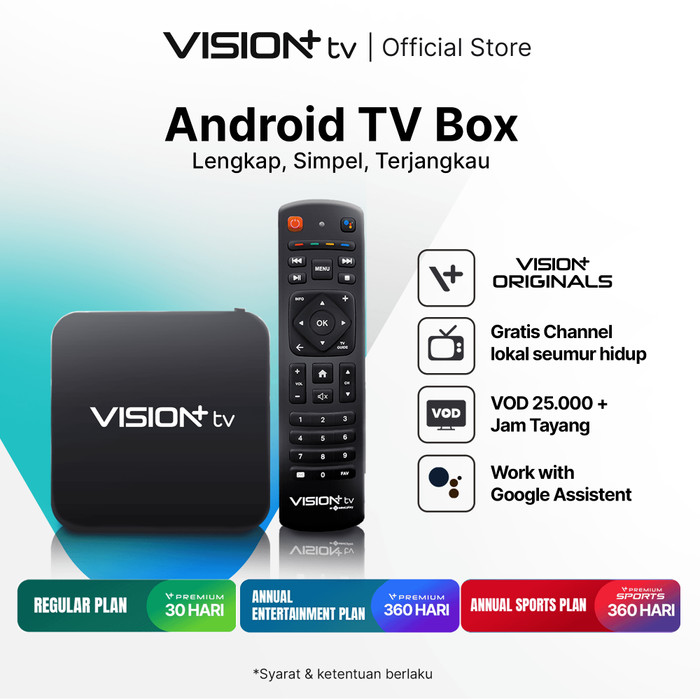 ANDROID TV BOX VISION+ TV BY MNC PLAY GRATIS TV NASIONAL SEUMUR HIDUP - GENRIC,REGULAR PLAN 1