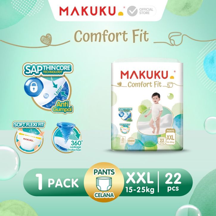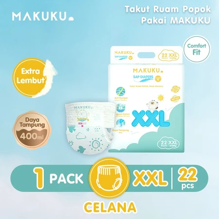 MAKUKU SAP Diapers Comfort Fit Pants XXL22 Popok Bayi Tipis Extra Dry Anti Gumpal Mengunci Cairan Cepat Kering