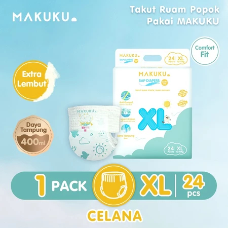 MAKUKU SAP Diapers Comfort Fit Pants XL24 Popok Bayi Tipis Extra Dry Anti Gumpal Mengunci Cairan Cepat Kering