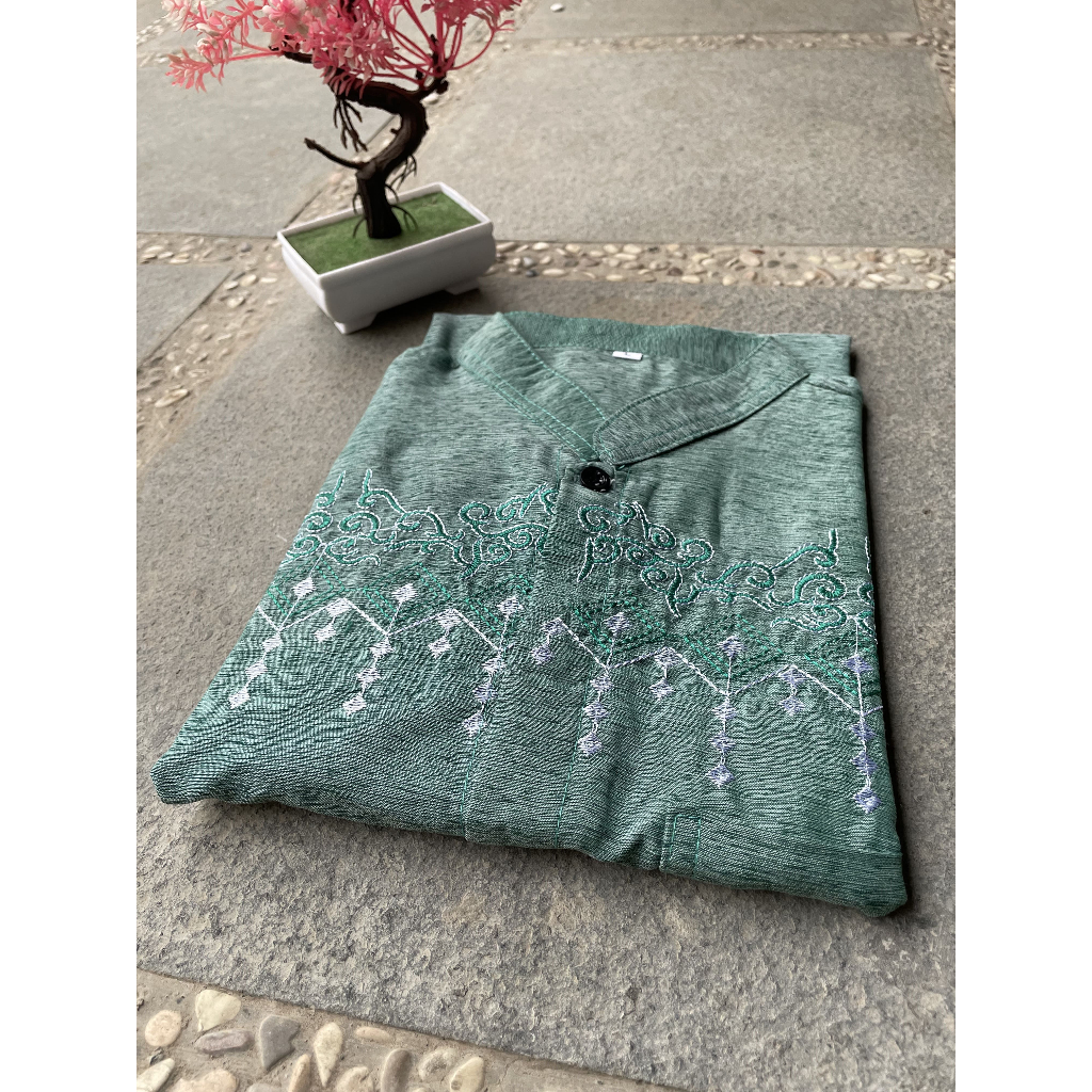 BAJU KOKO BORDIR LENGAN PENDEK TERMURAH BUSANA MUSLIM PRIA ALKHALIS