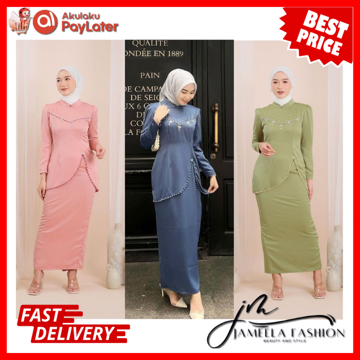 NEW Oneset Felicya Baju Kurung Melayu Dress Pesta Setelan Wanita Baju Kondangan Kekinian Full Payet 2024