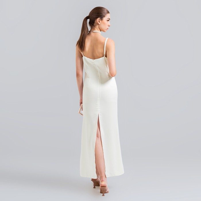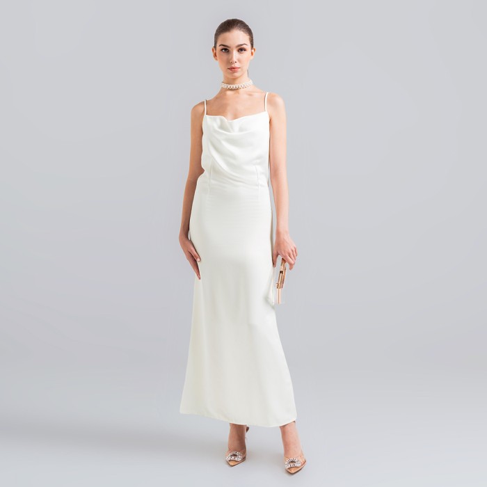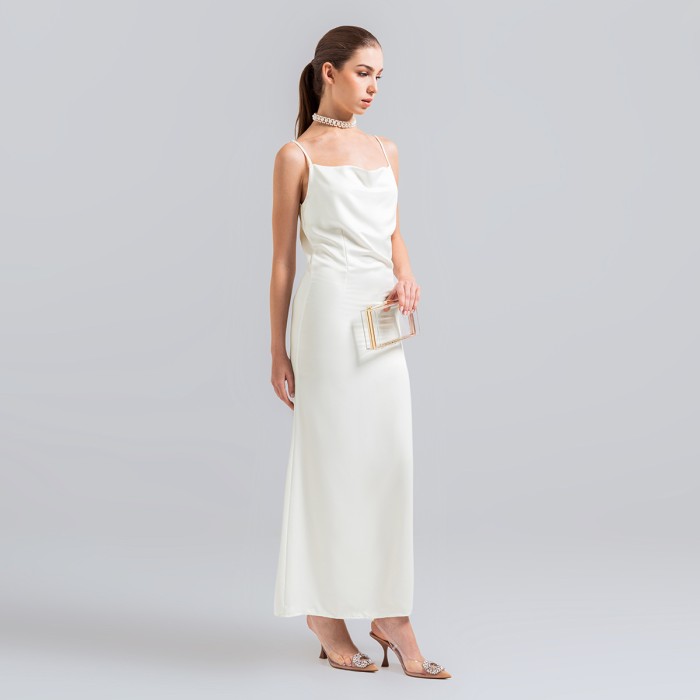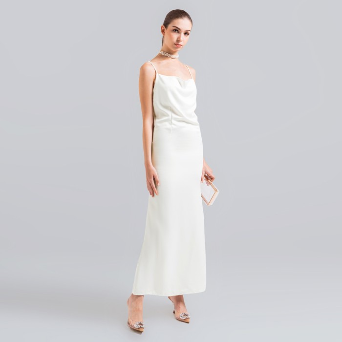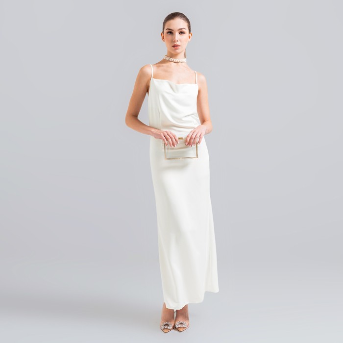 PIERRE SATIN LONG DRESS LOOKBOUTIQUESTORE - WHITE, S