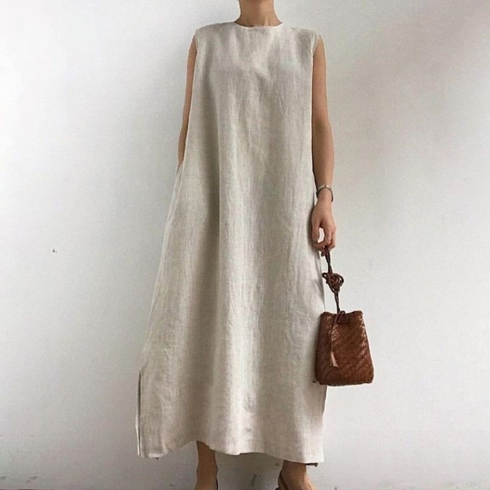 DRESS LINEN | CASUAL DRESS | MAXI DRESS | LONG DRESS | KOREAN STYLE - LD 100