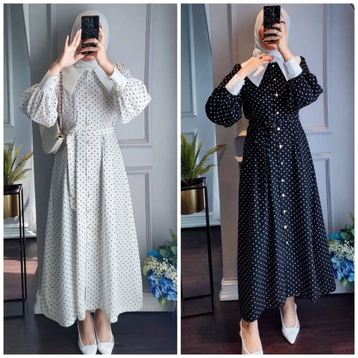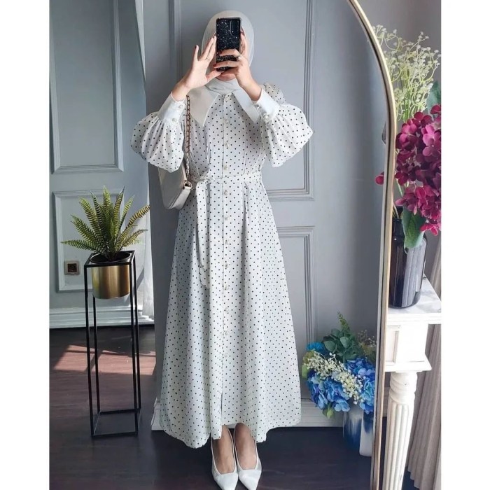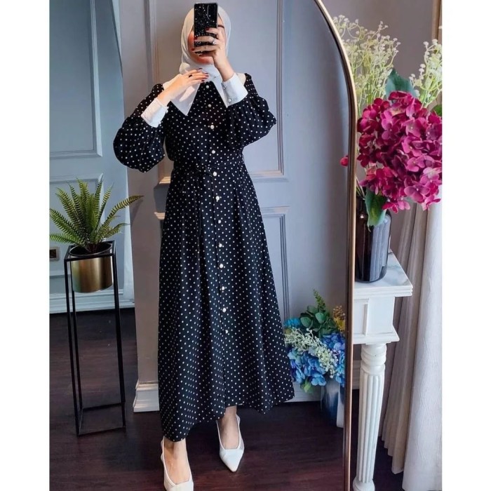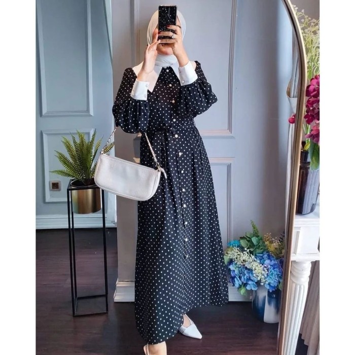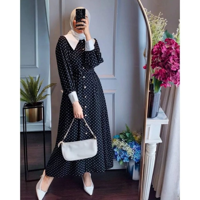 DRESS WANITA RIRI POLKADOT KEKINIAN MURAH DAN TERBARU - HITAM