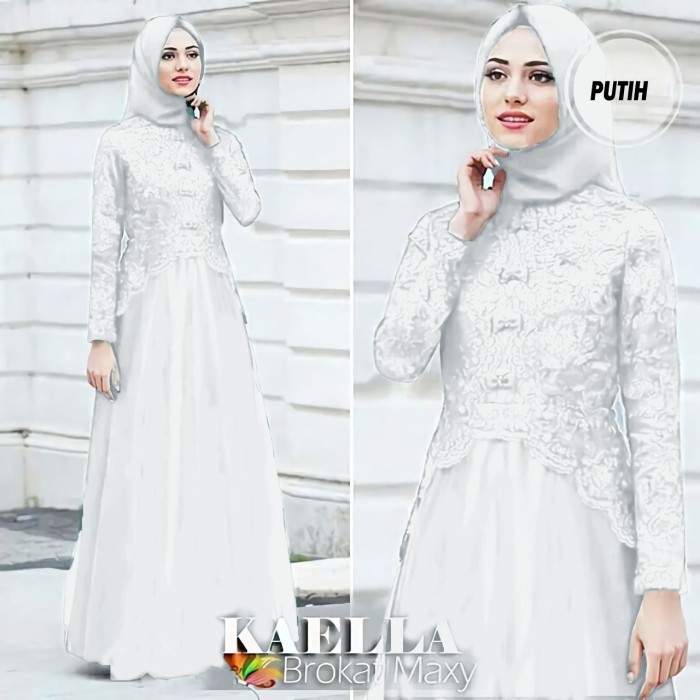 BAJU GAMIS BRUKAT WANITA MODERN KAELLA MAXY TERBARU 2021 - PUTIH, M