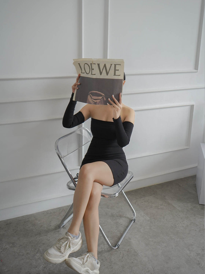 D-0220 BODYCON SCRUNCH TUBE DRESS KEMBEN LONG SLEEVES - DUSTY BLUE, L