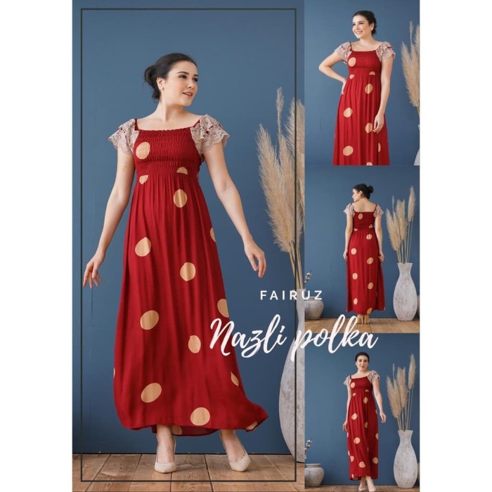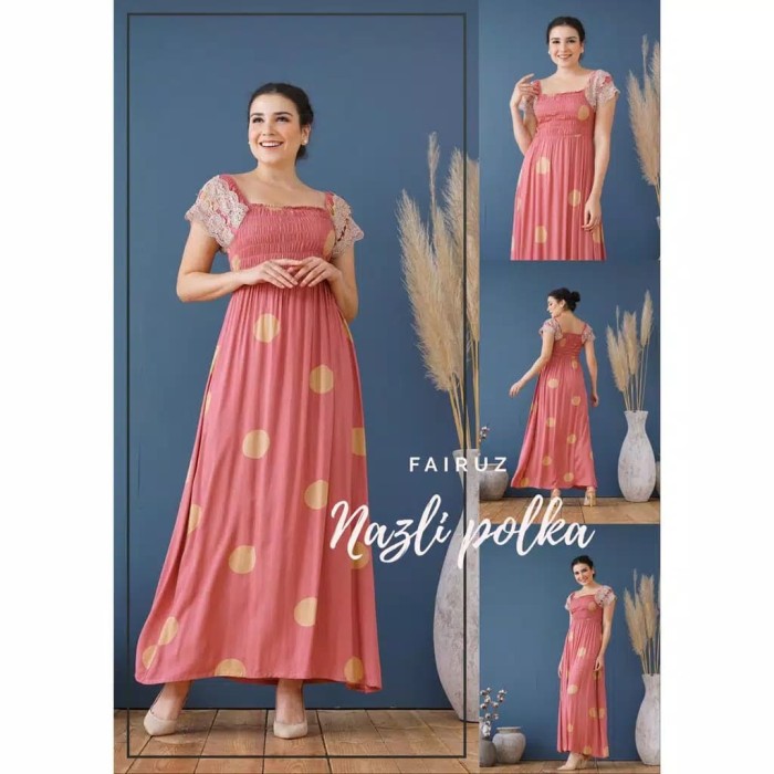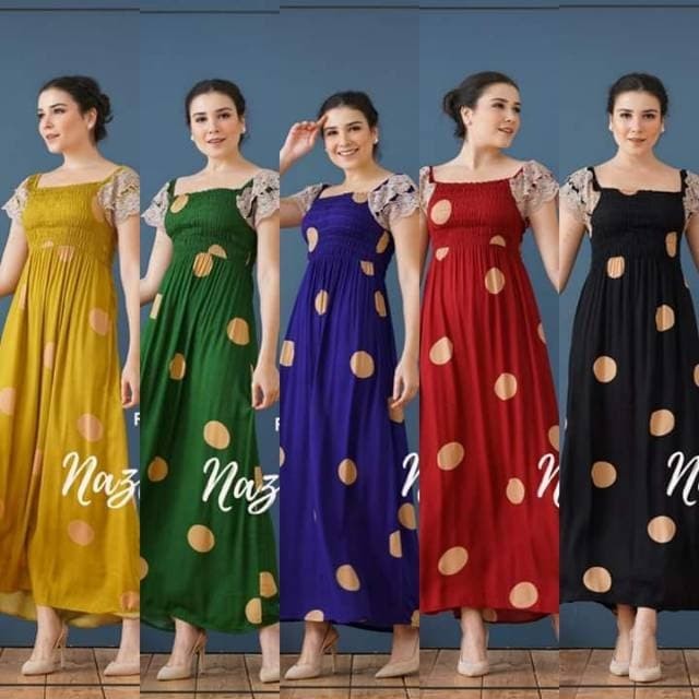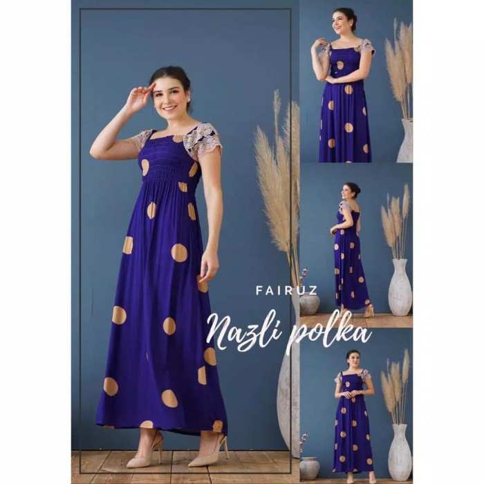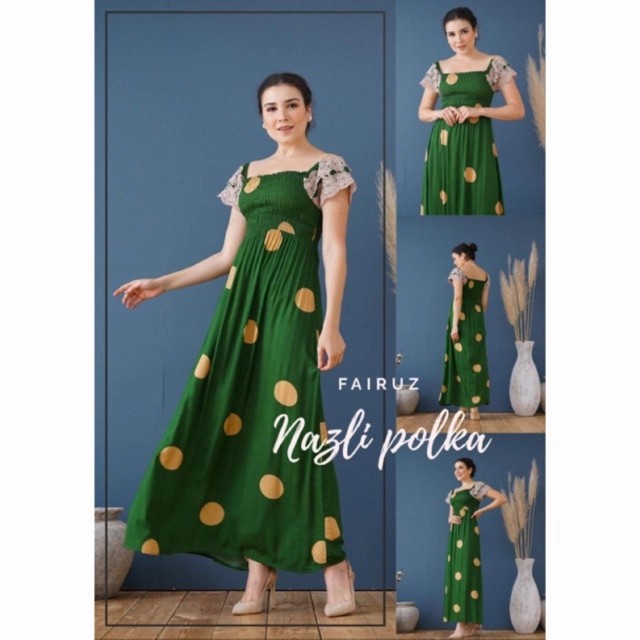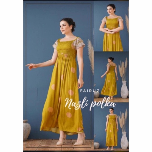 FAIRUZ DRESS NAZLI POLKA ORI DASTER ARAB INDIA DUBAI ABAYA GAMIS BUSUI - LEMON