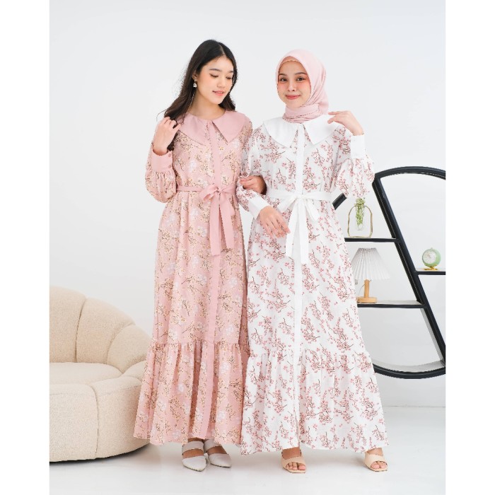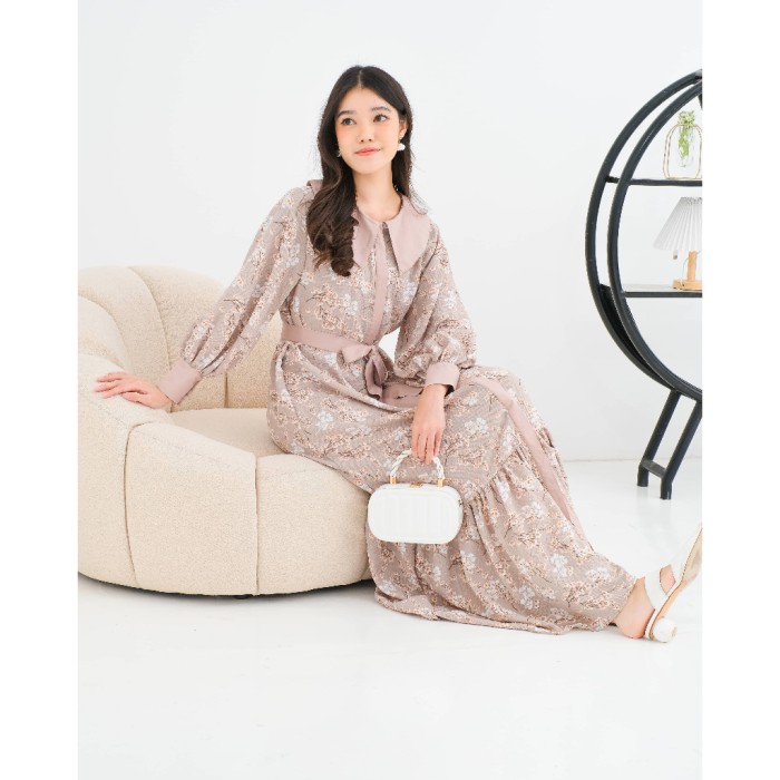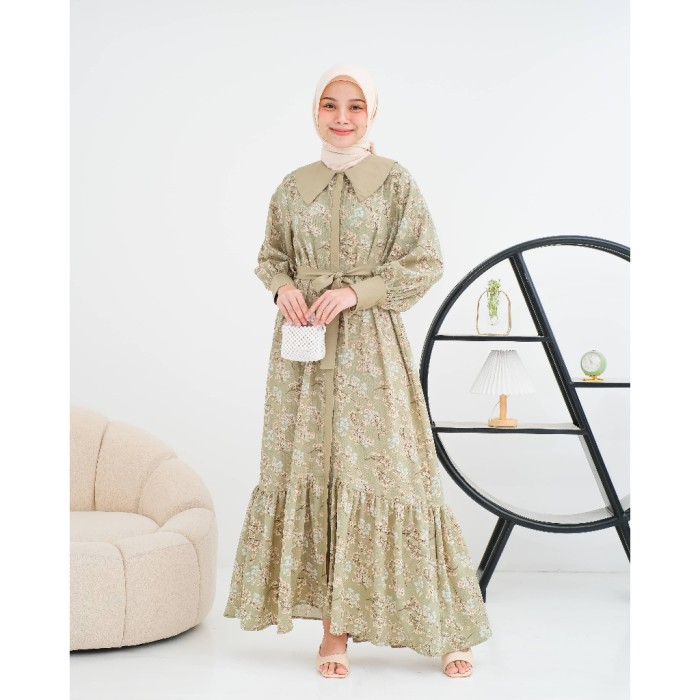 STELZA MAXIDRESS MAYOUTFIT | DRESS GAMIS CRINKLE FLORAL TALI PINGGANG - OLIVE