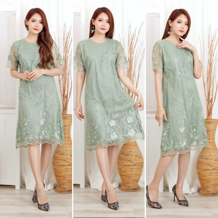 KUALITAS TERBAIK DRESS PESTA BRUKAT BAJU BROKAT WANITA PREMIUM MODERN