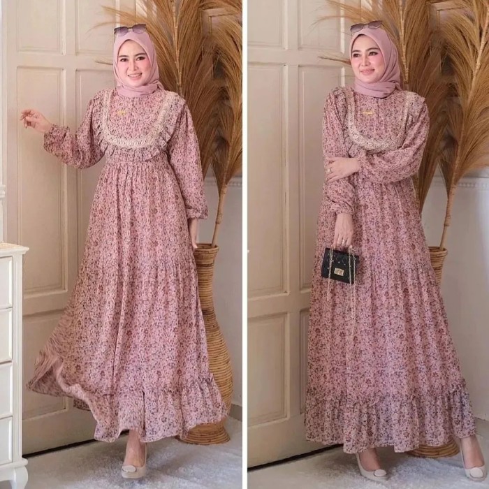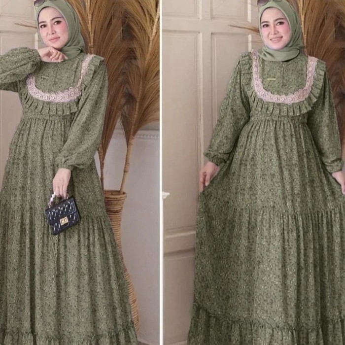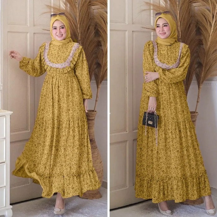 SAKURA DRESS BAHAN CERUTY MOTIF BUNGA GAMIS CERUTY BABYDOLL LEBARAN - YELLOW, ALL SIZE