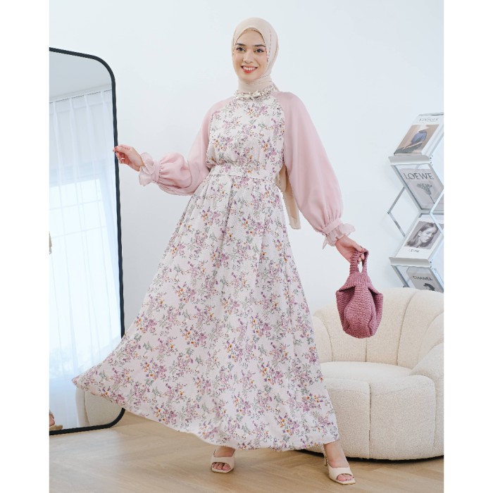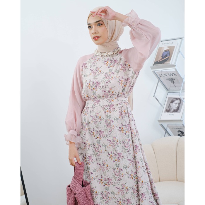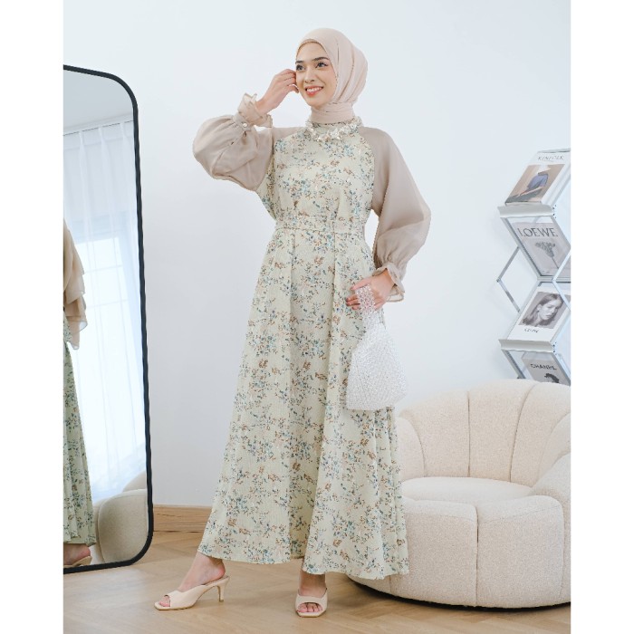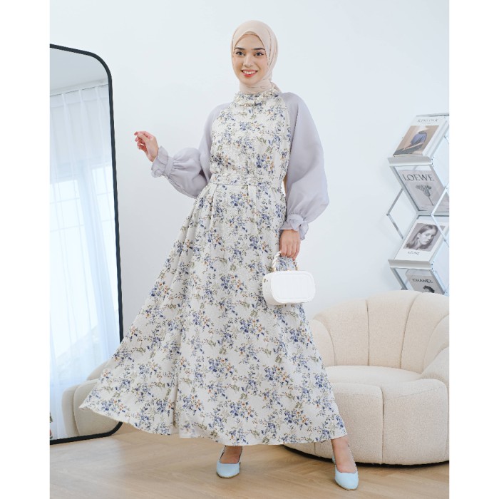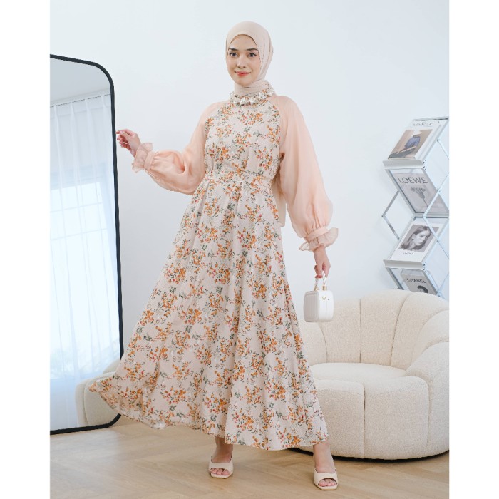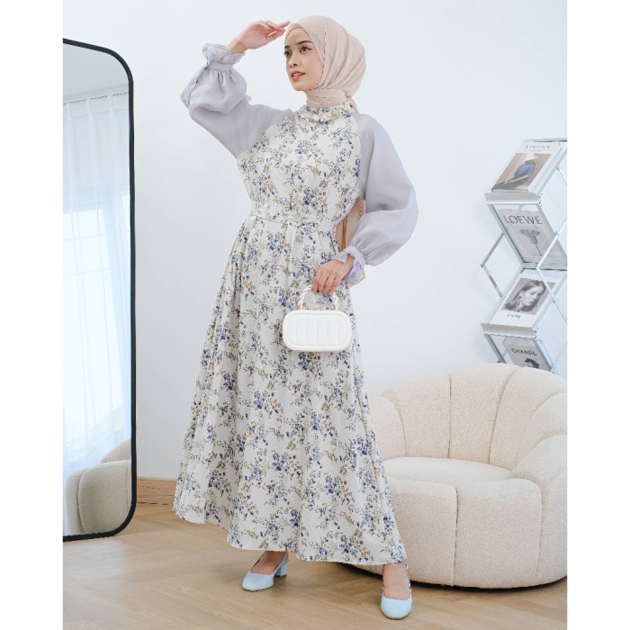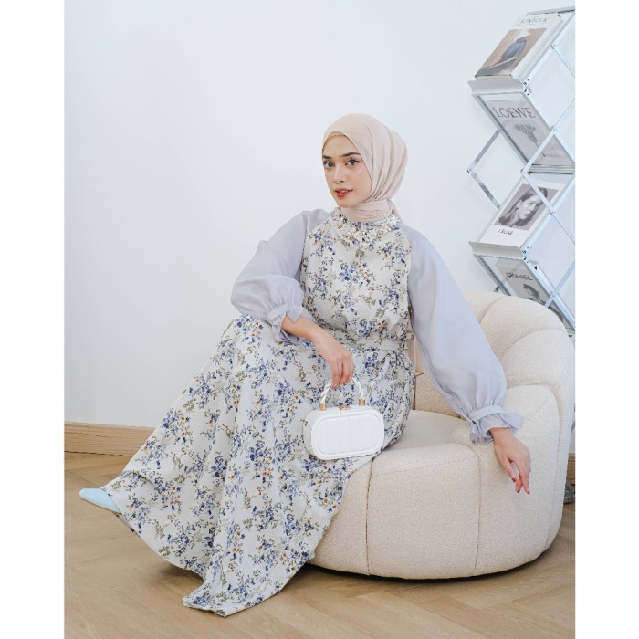 CEVINZA MAXIDRESS MAYOUTFIT | DRESS GAMIS ORGANZA MOTIF BUNGA - SMOKE