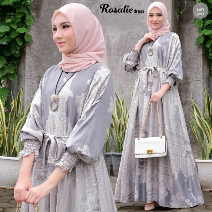 DRESS BUSUI JUMBO ROSALIE DRESS MAXMARA UKURAN L XL XXL 3XL 4XL LD UP - SOFT GREY, L