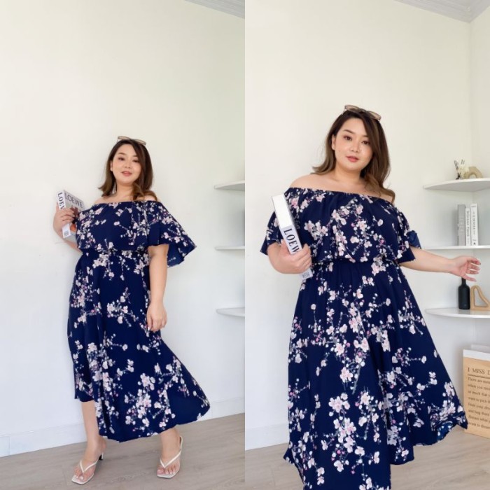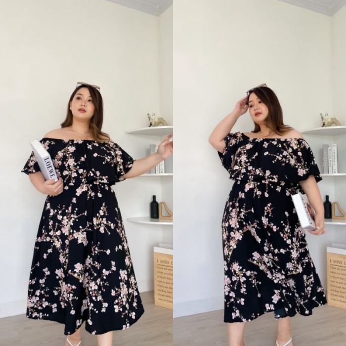 WK DRESS SABRINA WANITA JUMBO BIG SIZE PESTA PANTAI CASUAL FLORAL MIDI - MERAH MUDA, LD. 125