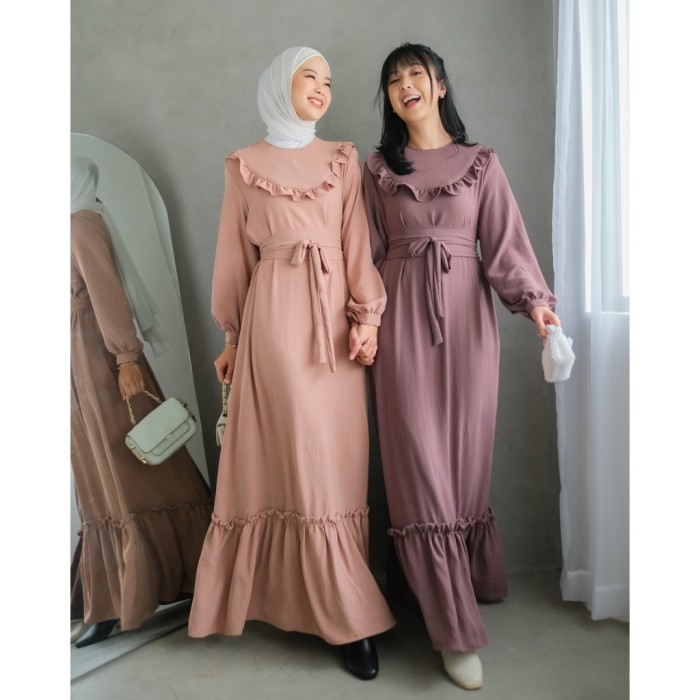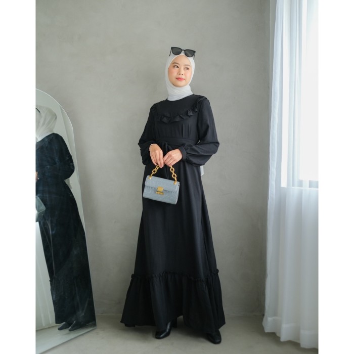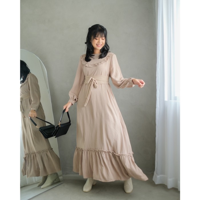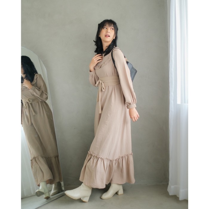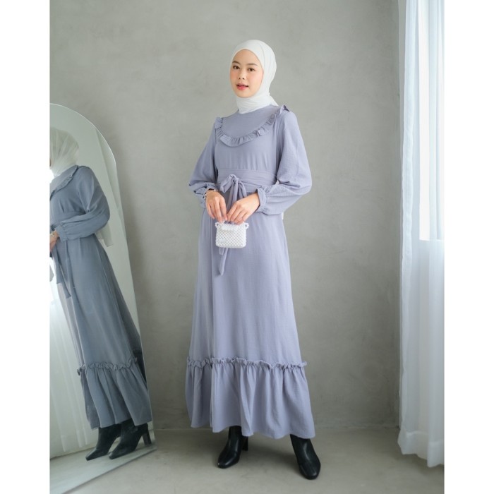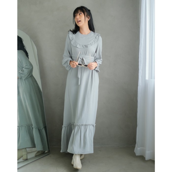 VETTA MAXIDRESS MAYOUTFIT | DRESS RUFFLE TALI PINGGANG - ASHGREY