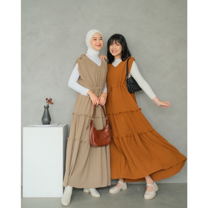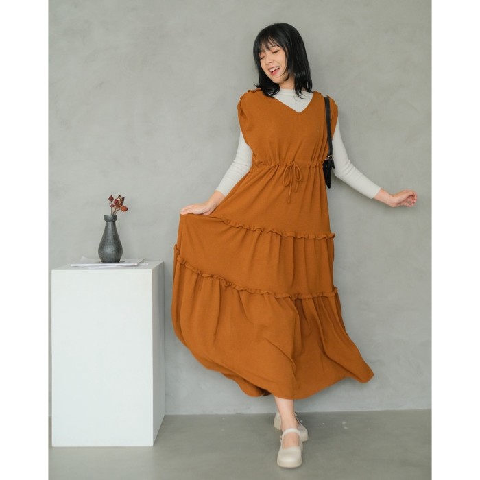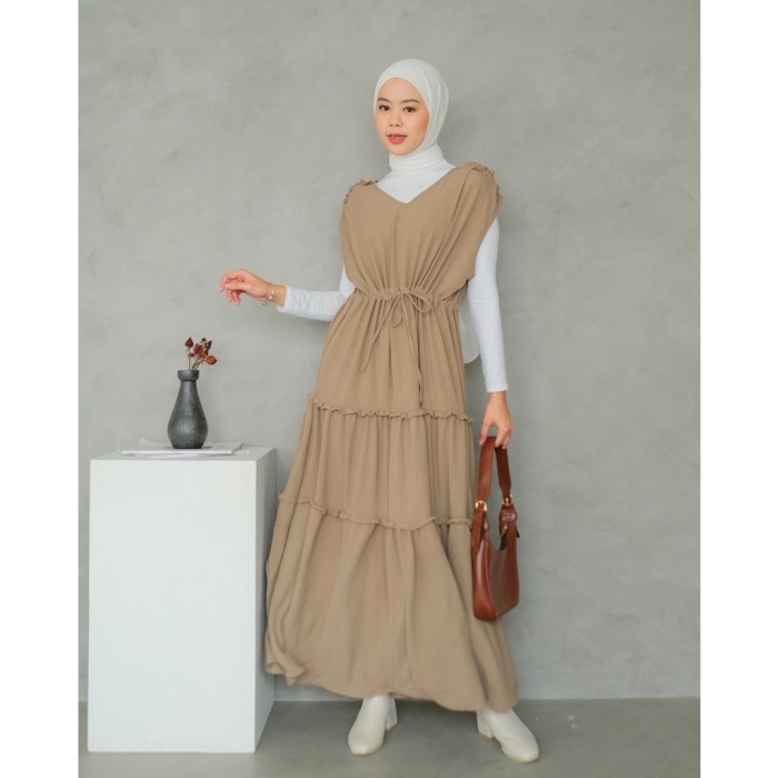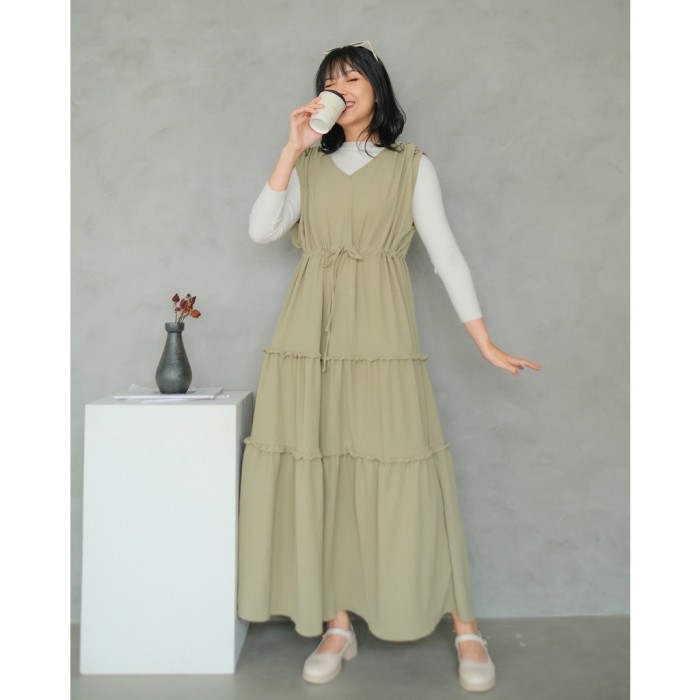 QEEYARI OVERALL MAYOUTFIT | OVERALL DRESS GAMIS LAYER KERUT PINGGANG - MATCHA