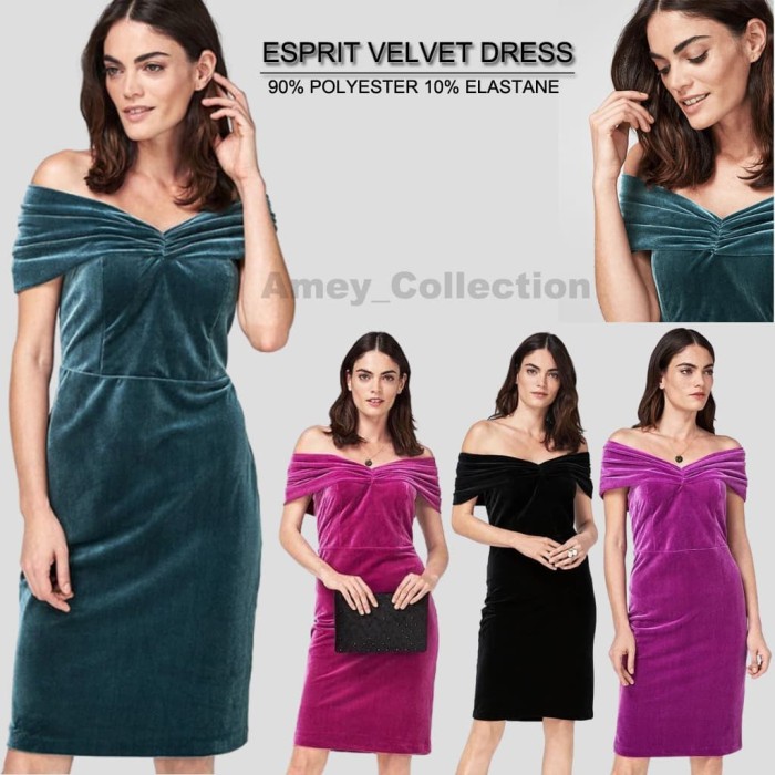 DRESS WANITA ESPRIT/ESP04 VELVET DRESS ORIGINAL BRANDED - GREEN, 32