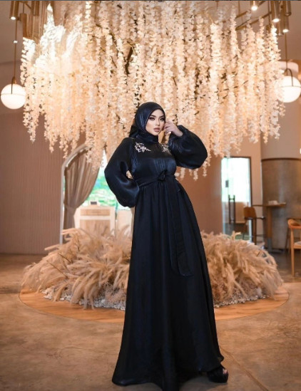 OVSC MEIRA DRESS BAHAN SHIMMER SILK AKSEN PAYET BUNGA DRESS WANITA2023 - BLACK, M